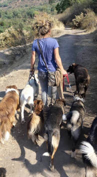 Paseos mínimo de dos horas en manada. Les permite correr, jugar, oler, ser felices con sus pares.